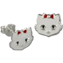 Kinder Ohrring Katze weiß Silber Ohrstecker Kinderschmuck TW SDO8102W