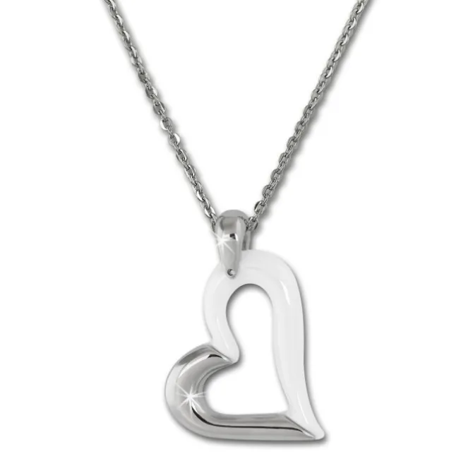 - Kurzbeschreibung: Amello Damen Kette Edelstahl/Keramik Herz stahl/weiß