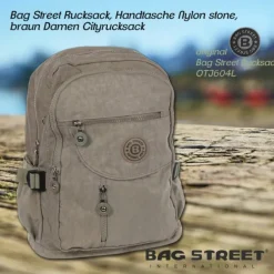 Rucksack, Handtasche Nylon stone, braun Damen Cityrucksack – Bag Street