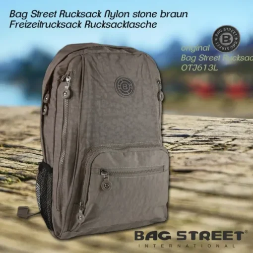 Rucksack Nylon stone, braun Freizeitrucksack Rucksacktasche – Bag Street