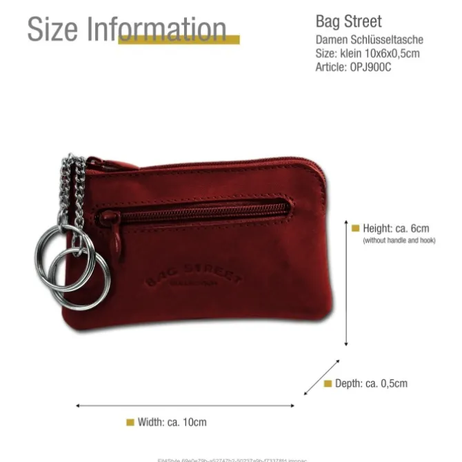 Schlüsseltasche aus besonders weichem Leder mit Aufschrift Bag Street Collection. Angenehm leicht und mit 2 Schlüsselringen versehen. Dieses Etui gibt es in vielen Farben.
