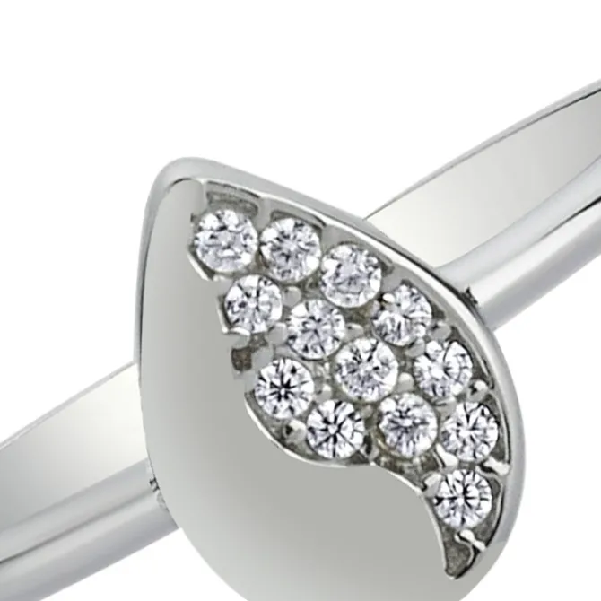 Eleganter Ring aus hochwertigem 333er Weißgold gefertigt. Auf der Ringschiene ist ein Blattmotiv angebracht, welcher hälftig mit funkelnden Zirkonia besetzt ist. Der Ring hat eine Größe von 54 (17,2).