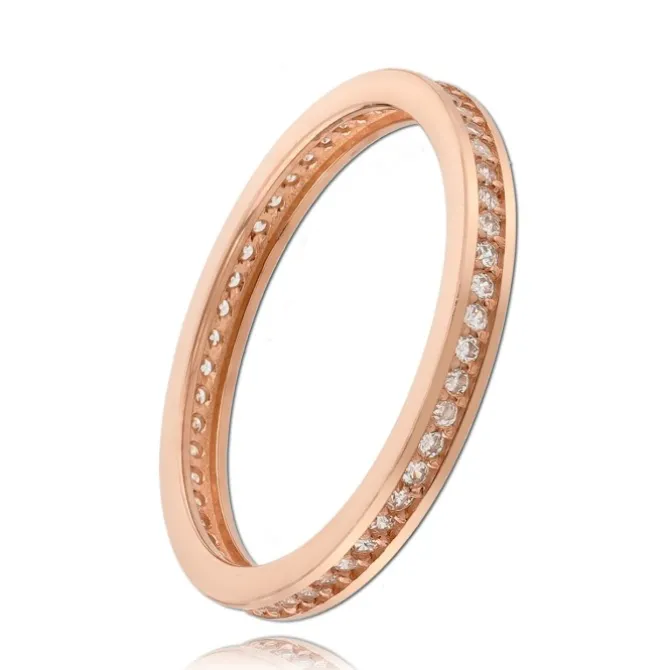 Edler Ring aus 333er Rosegold gefertigt. Die Ringschiene ist mit einer Reihe funkelnden Zirkonias besetzt. Der Ring hat eine Größe von 60 (19,1).