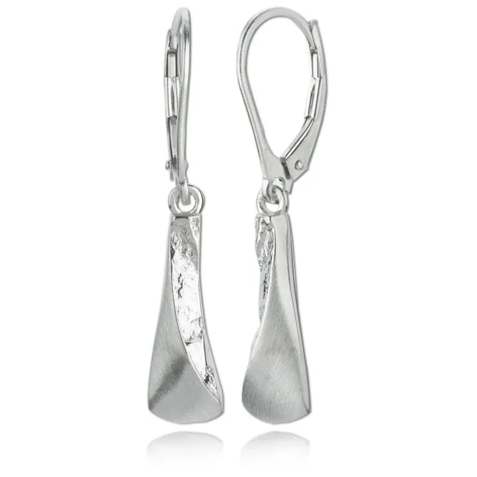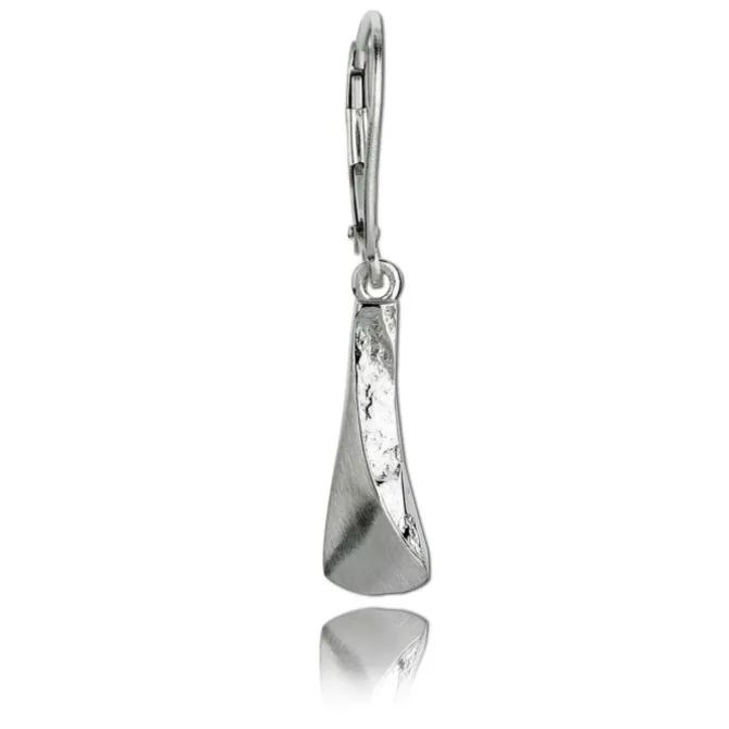 Elegante 3D Damenohrringe aus feinstem 925er Sterling Silber mit mattierter und geschlagener Oberfläche.