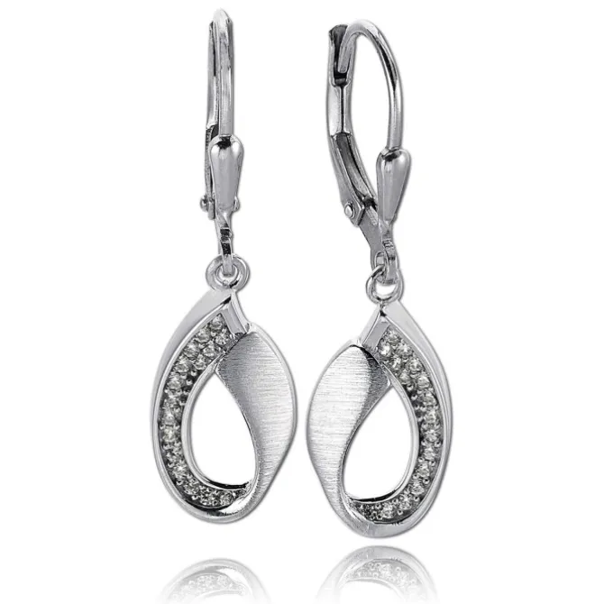 Elegante Damenohrringe aus 925er Sterling Silber mit polierter Oberfläche. Die Ohrhänger haben eine geschlossene, ovale Form. Die funkelnden Zirkonia vollenden die Eleganz der Ohrringe.