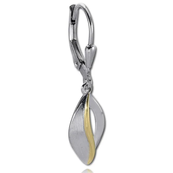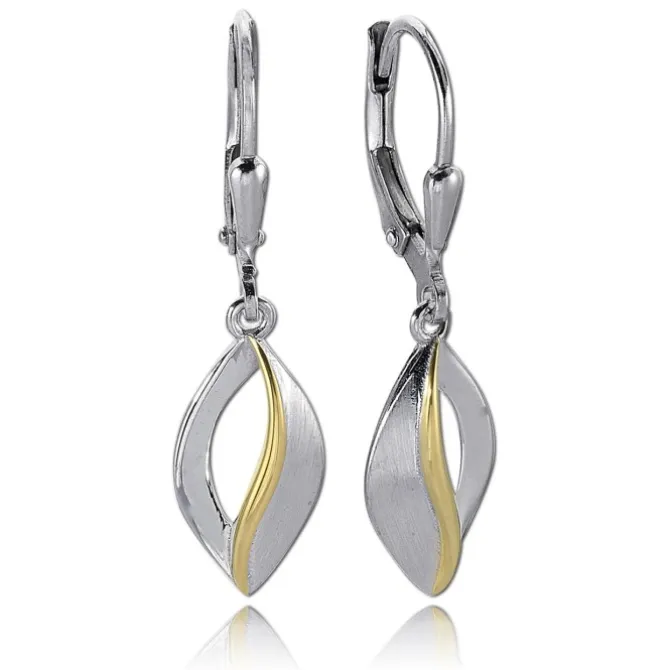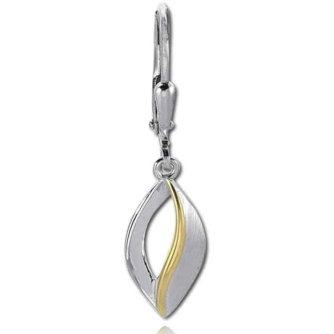 Elegante Damenohrringe aus 925er Sterling Silber mit polierter und matter Oberfläche. Die Ohrhänger haben eine offene und blattförmige Form. Die gelbgoldene Linie vollendet den Eleganz der Ohrringe.