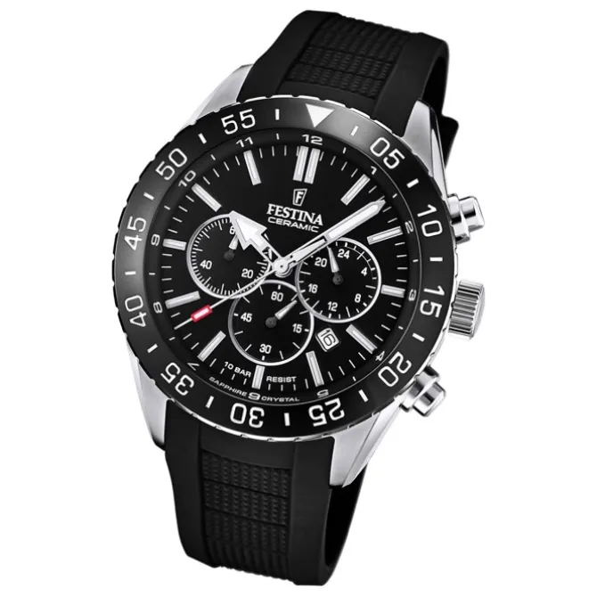 Diese Sport Uhr für Herren aus der exklusiven Festina Keramik-Kollektion verfügt über ein hochwertiges Silikon-Armband in schwarz. Das analoge Quarzwerk und die Wasserdichte bis 10 bar machen diese Armbanduhr zu einem besonders zuverlässigen Begleiter.