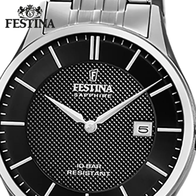 Festina Herren Armbanduhr Swiss Made F20005/4 Quarz Edelstahl silber UF20005/4
