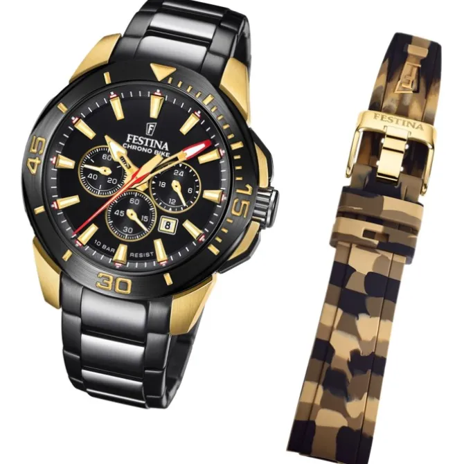 Die -Chrono Bike- Kollektion von Festina sind sportliche Uhren, die vom Radsport inspiriert sind. Sie haben ein robustes Gehäuse, ein leuchtendes Zifferblatt, ein präzises Quarzwerk und ein sportliches Armband.