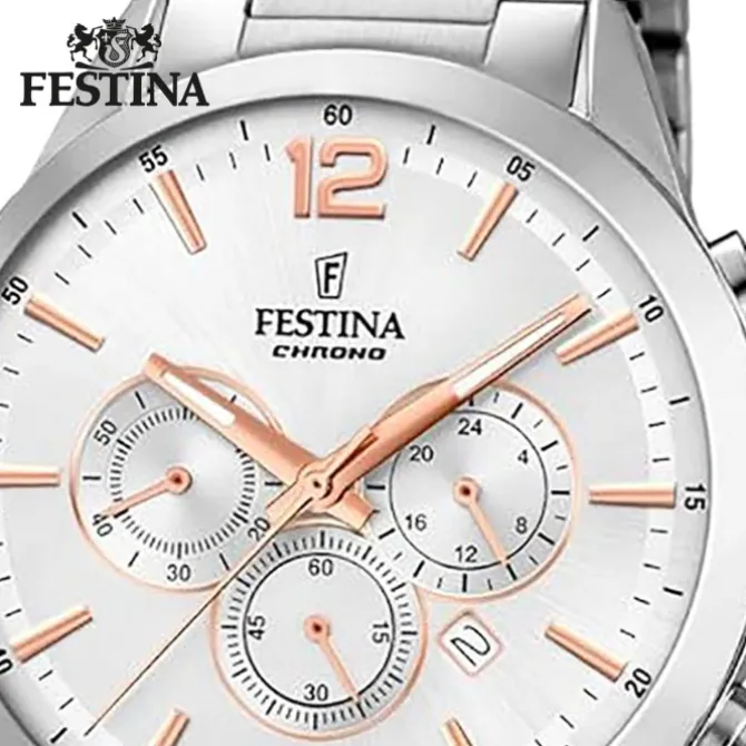 Die FESTINA -Timeless Chrono- Kollektion hinterlässt Eindruck mit hohem Wiedererkennungswert und raffiniertem Design. Sie hat eine diskrete zeitlose Art, die sich passend an ihr Handgelenk schmiegt.