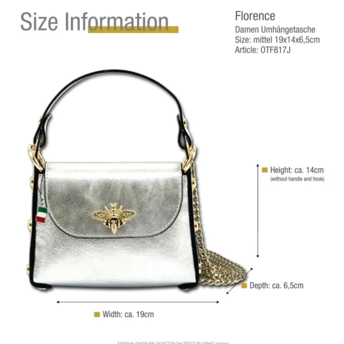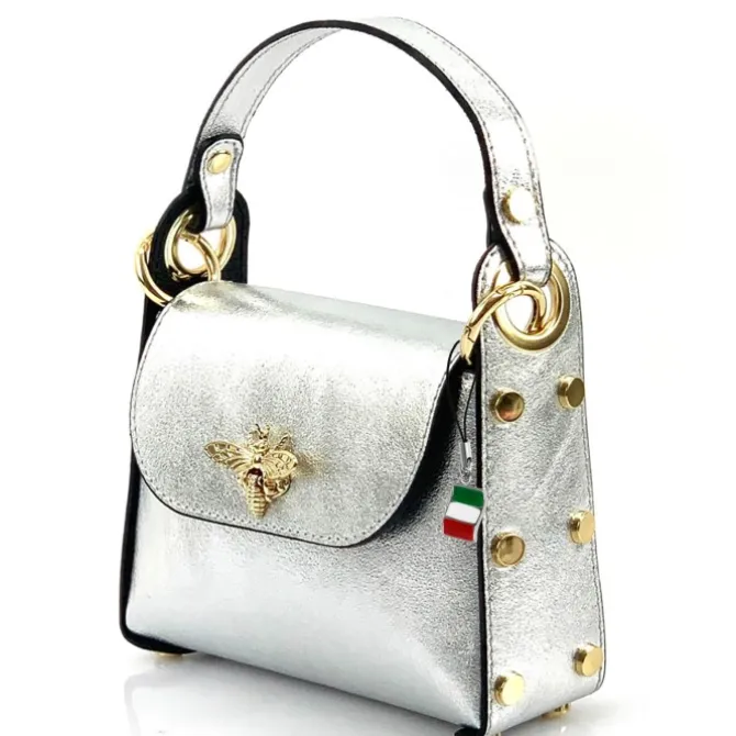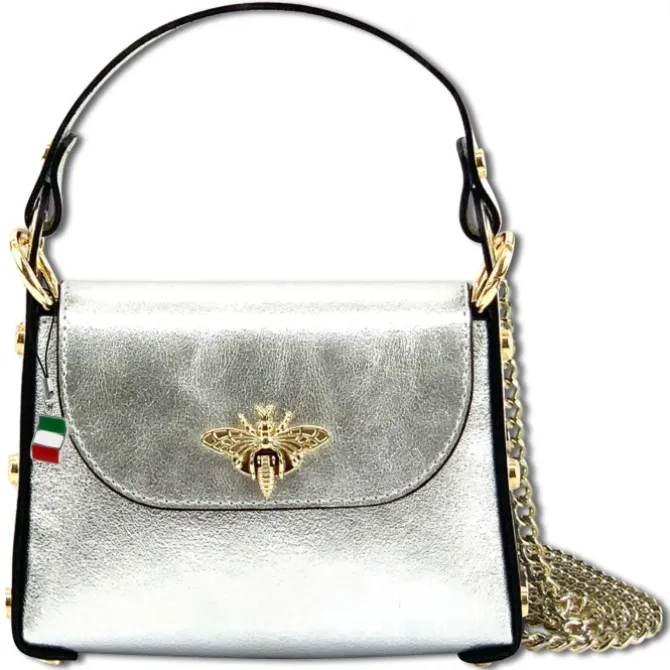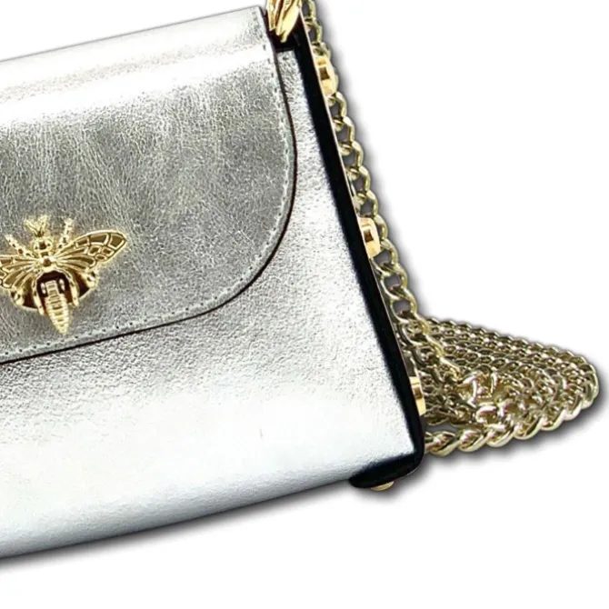 Umhängetasche Biene Leder Damen silber metallic Florence