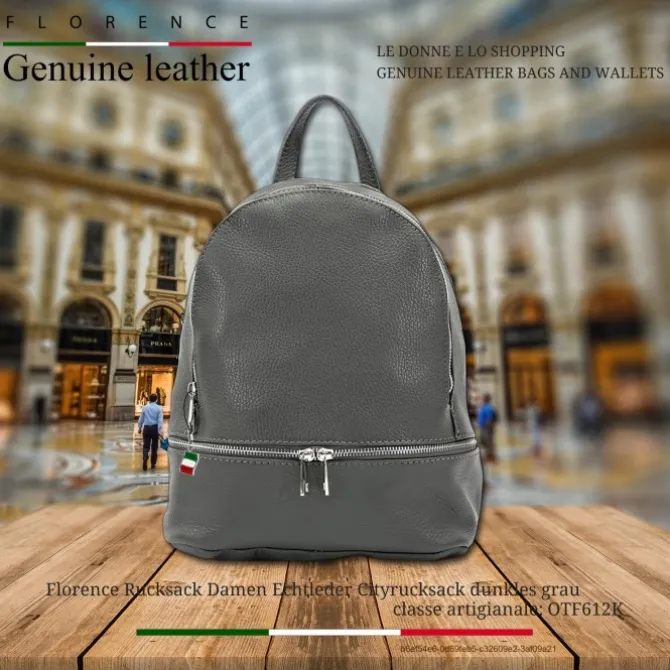 Cityrucksack Echt-Leder Damen dunkles grau Florence