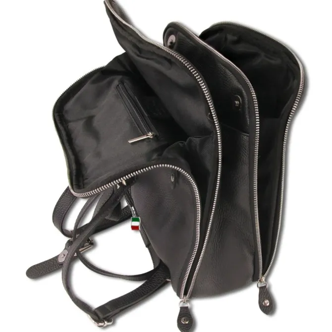 Cityrucksack Echt-Leder Damen schwarz Florence