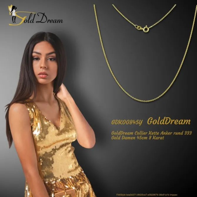 Ein modernes 8 Karat Collier Anker rund in 45cm mit Federringverschluss aus unserer einzigartigen GoldDream Echtschmuck Kollektion aus anlaufgeschütztem 333er Gelbgold. Die Goldkette ist sehr edel verarbeitet und lässt sich zu jedem Anlass tragen. Wir haben zu dieser Halskette auch die passenden Anhänger im Angebot. Suchen Sie einfach nach GDH.