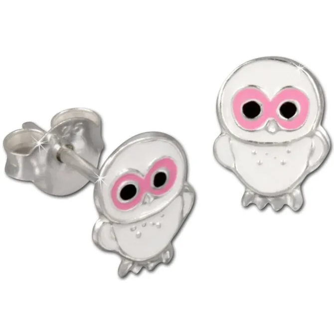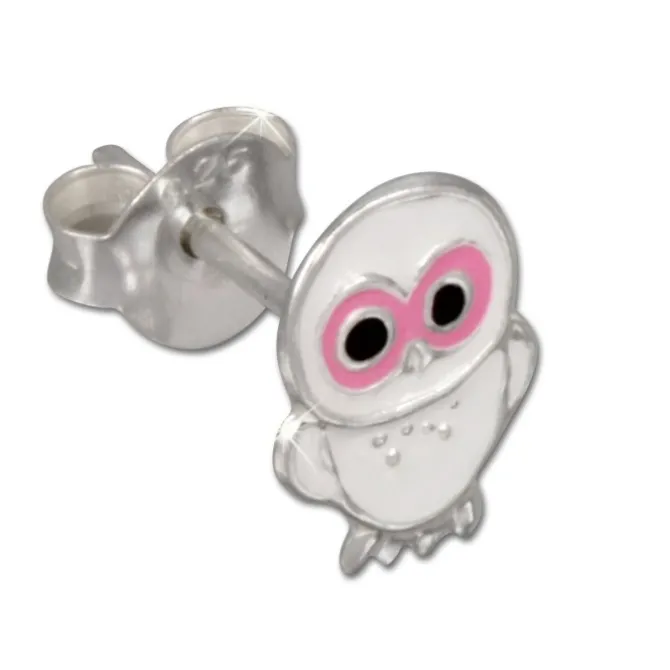 Teenie-Weenie Kinder Ohrstecker Käuzchen weiß aus unserer Kinderschmuck Kollektion aus anlaufgeschütztem 925 Sterling Silber.