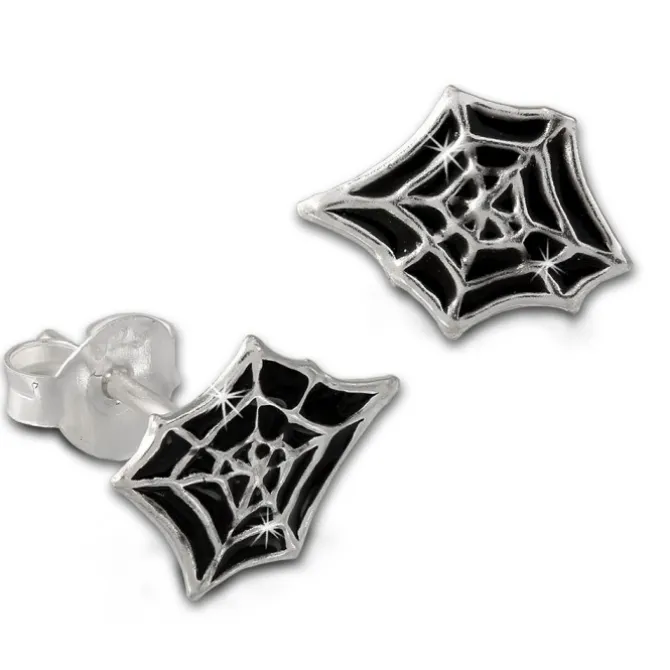 Teenie-Weenie Kinder Ohrstecker Spinnennetz mit schwarzer Emaille aus unserer Kinderschmuck Kollektion aus anlaufgeschütztem 925 Sterling Silber.