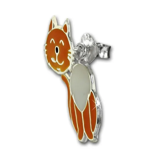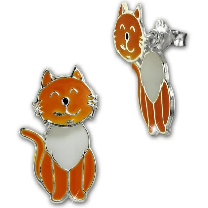 - Kurzbeschreibung: Teenie-Weenie Kinder Doppel Ohrstecker Katze mit Emaille aus 925 Silber