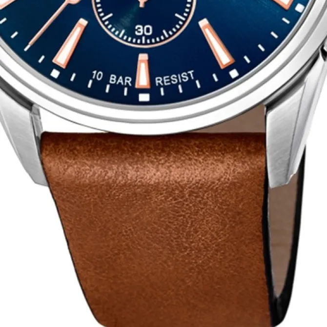 Diese Sport Uhr für Herren aus der exklusiven LOTUS Khrono-Kollektion verfügt über ein hochwertiges Leder-Armband in braun. Das analoge Quarzwerk und die Wasserdichte bis 10 bar machen diese Armbanduhr zu einem besonders zuverlässigen Begleiter.