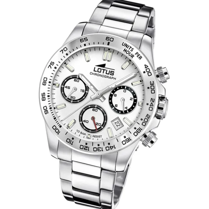 Diese einzigartige Uhr für Herren aus der aktuellen Lotus Classic Kollektion garantiert hohen Tragekomfort durch das hochwertige Edelstahl-Armband in silber. Der Chronograph und präzisem Armbanduhr ist ein zuverlässiger Begleiter in Alltag und Freizeit.