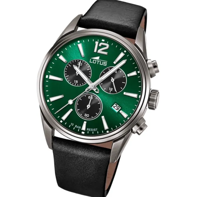 Diese einzigartige Uhr für Herren aus der aktuellen Lotus Classic Kollektion garantiert hohen Tragekomfort durch das hochwertige Leder-Armband in schwarz. Der Chronograph und präzisem Armbanduhr ist ein zuverlässiger Begleiter in Alltag und Freizeit.