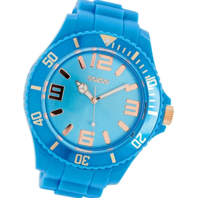 Diese Fashion Uhr für Damen aus der exklusiven Oozoo Oozoo Timepieces-Kollektion verfügt über ein hochwertiges Silikon-Armband in blau. Das Gehäuse der Uhr ist extra groß (ca. 48mm). Das analoge Uhrwerk und das Uhrenglas aus Mineralglas machen diese Armbanduhr zu einem hochwertigen und modischen Begleiter.