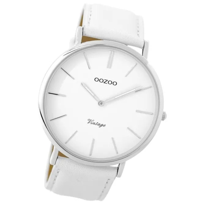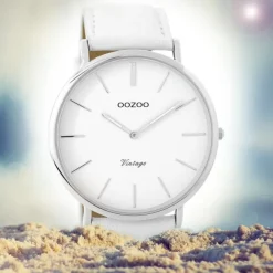 Diese Fashion Uhr für Damen aus der exklusiven Oozoo Vintage Series-Kollektion verfügt über ein hochwertiges Leder-Armband in weiß. Das analoge Quarzwerk und die Wasserdichte bis 3 bar machen diese Armbanduhr zu einem besonders zuverlässigen Begleiter.