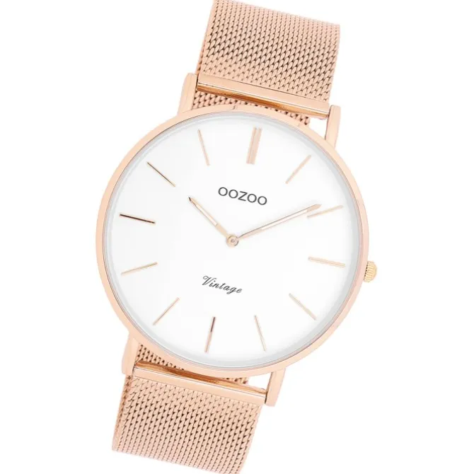 Diese Fashion Uhr für Damen aus der exklusiven Oozoo Oozoo Vintage Series-Kollektion verfügt über ein hochwertiges Edelstahl-Armband in roségold. Das analoge Uhrwerk und eine Wasserdichtigkeit bis 3 bar machen diese Armbanduhr zu einem besonders zuverlässigen Begleiter.
