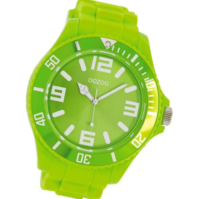 Diese Fashion Uhr für Damen und Herren aus der exklusiven Oozoo Oozoo Vintage Series-Kollektion verfügt über ein hochwertiges Silikon-Armband in grün. Das Gehäuse der Uhr ist extra groß (ca. 48mm). Das analoge Uhrwerk und das Uhrenglas aus Mineralglas machen diese Armbanduhr zu einem hochwertigen und modischen Begleiter.