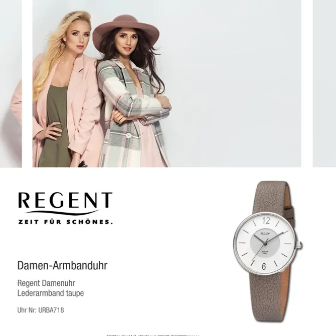 Seit seiner Gründung 1983 steht das Uhrenlabel Regent für kontinuierliche Weiterentwicklung und höchste Qualität. Unter dem Motto -Zeit für Schönes- betonen die Uhren zeitlose Eleganz und verleihen Ihrem Look eine perfekte Note.