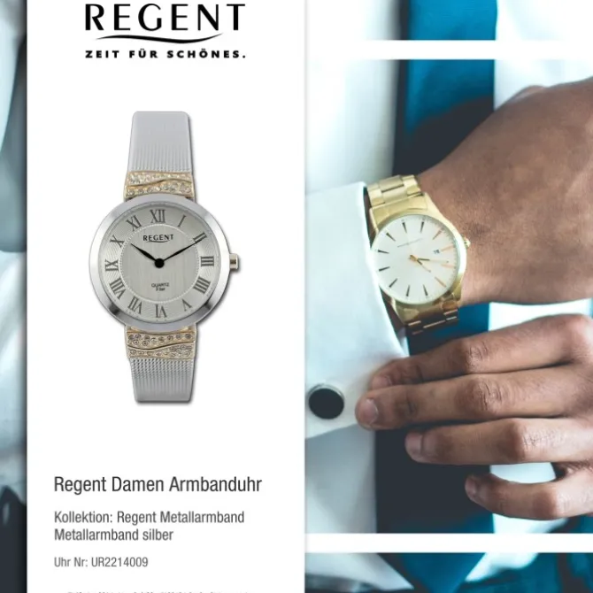 Seit seiner Gründung im Jahr 1983 hat das Uhrenlabel Regent kontinuierliche Entwicklung und Qualitätsansprüche gepflegt. Unter dem Slogan -Zeit für Schönes- betonen die Uhren zeitlose Eleganz und verleihen Ihrem Stil eine tolle Ausstrahlung.
