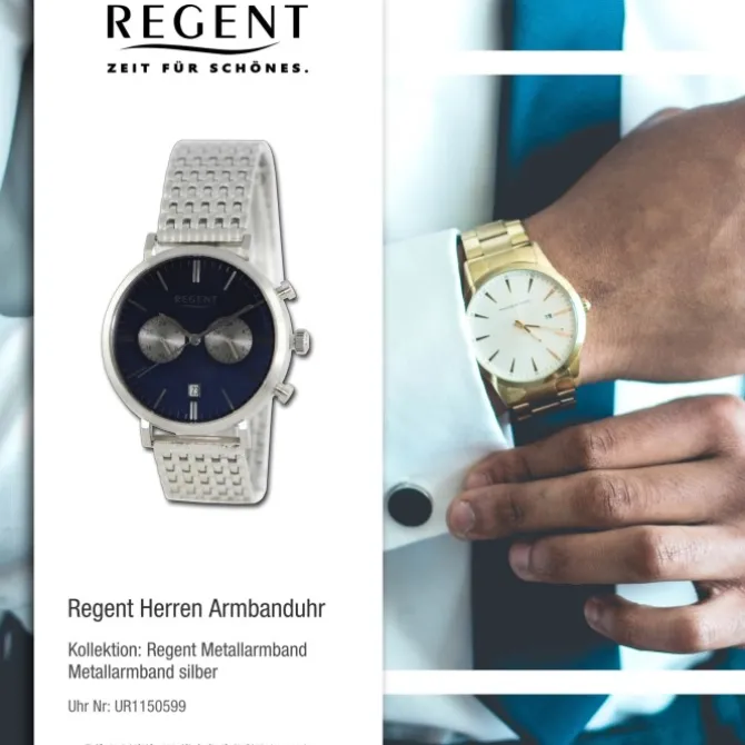 Die Regent Metallarmband-Kollektion bietet zeitgemäßes Design und Robustheit in einem. Diese Uhren sind perfekte Begleiter für jeden Anlass mit ihrem modernen Look und langlebigen Material.