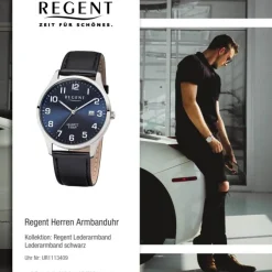 - Kurzbeschreibung: Regent Herren-Armbanduhr 32-1113409 Quarz-Uhr Leder-Armband schwarz UR1113409