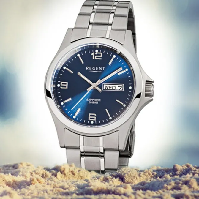- Kurzbeschreibung: Regent Herren-Armbanduhr Saphirglas Quarz Edelstahl silber URF654