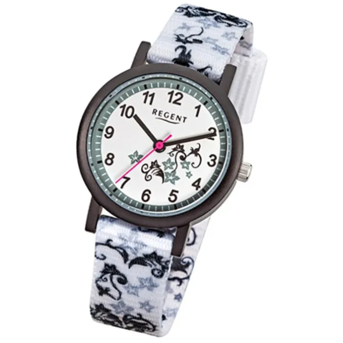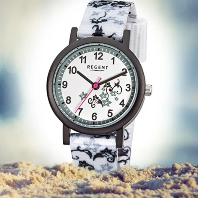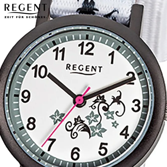 - Kurzbeschreibung: Regent Kinder-Armbanduhr Blumenranke Quarzwerk Textil-Armband weiß URF728