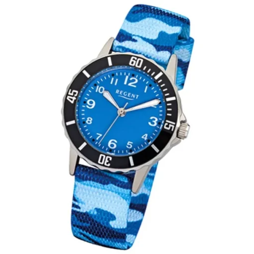 Diese tolle Uhr für Kinder aus der aktuellen Regent Kollektion garantiert hohen Tragekomfort durch das hochwertige Textil, Stoff-Armband in blau. Die Armbanduhr mit analoger Anzeige und präzisem Quarzwerk ist ein zuverlässiger Begleiter in Alltag und Freizeit.