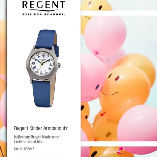 - Kurzbeschreibung: Regent Kinder-Armbanduhr – Kinderuhren – Quarz Leder blau URF947