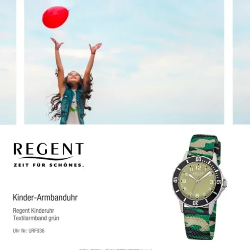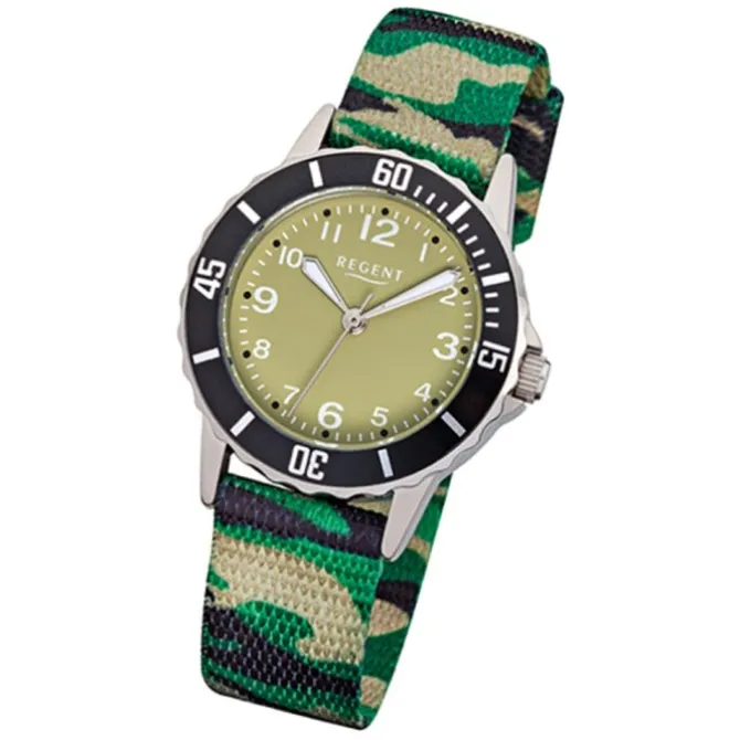- Kurzbeschreibung: Regent Kinder-Uhr – Kinderuhren – Quarz Textil grün, schwarz, camouflage URF938