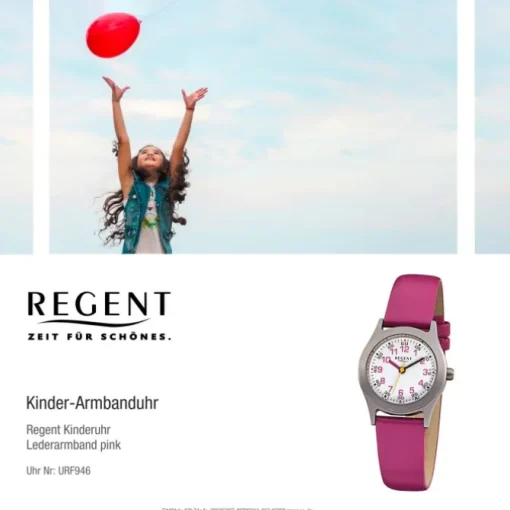 - Kurzbeschreibung: Regent Kinderuhren Quarzwerk Leder-Armband pink Kinder-Armbanduhren URF946