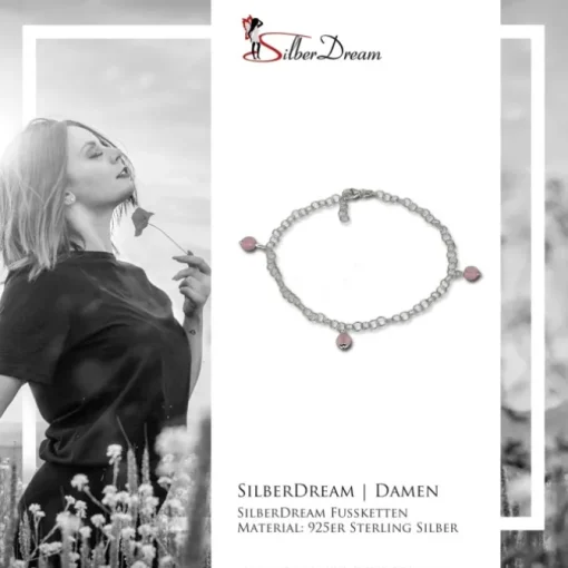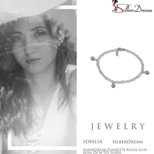 - Kurzbeschreibung: SilberDream 25cm Fußkette Kugel rosa