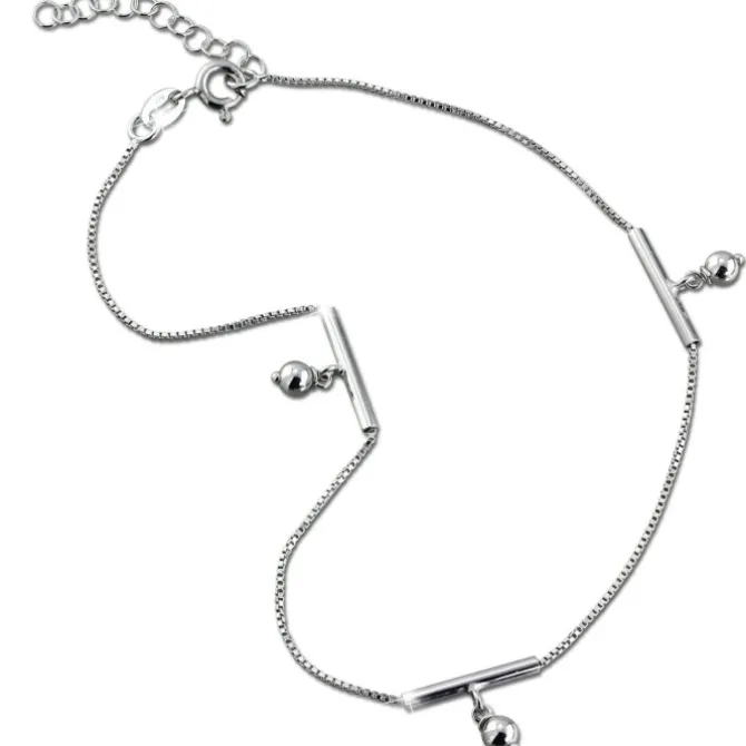 Eine größenverstellbare Fußkette Kugeln mit Federringverschluss aus unserer einzigartigen SilberDream Kollektion aus anlaufgeschütztem 925 Sterling Silber. Die Fuß-Kette hat eine Länge von 25cm bis 28cm, weil das Fußkettchen eine 3cm Verlängerungskette inkludiert hat.