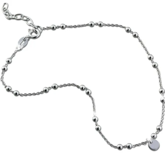 Eine größenverstellbare Fußkette Plättchen mit Federringverschluss aus unserer einzigartigen SilberDream Kollektion aus anlaufgeschütztem 925 Sterling Silber. Die Fuß-Kette hat eine Länge von 25cm bis 28cm, weil das Fußkettchen eine 3cm Verlängerungskette inkludiert hat.