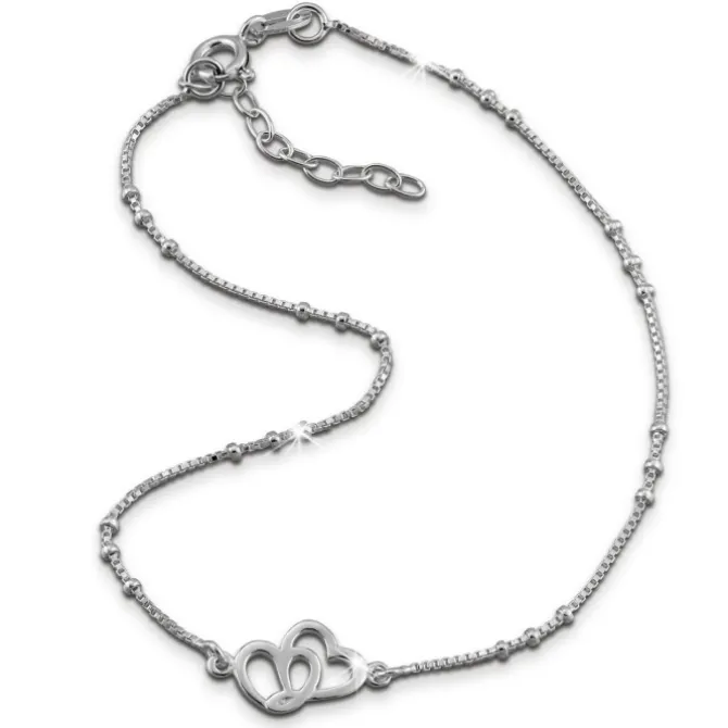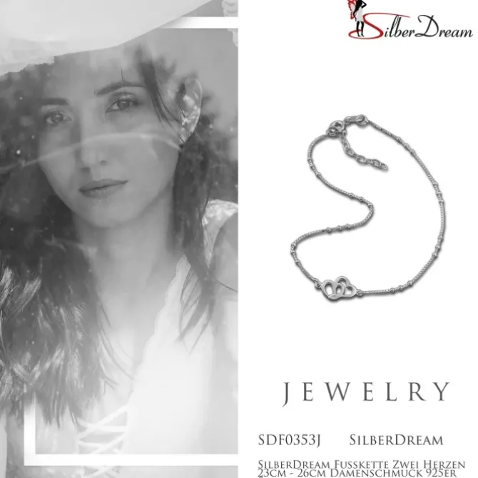 - Kurzbeschreibung: SilberDream Fußkette Zwei Herzen 23cm – 26cm