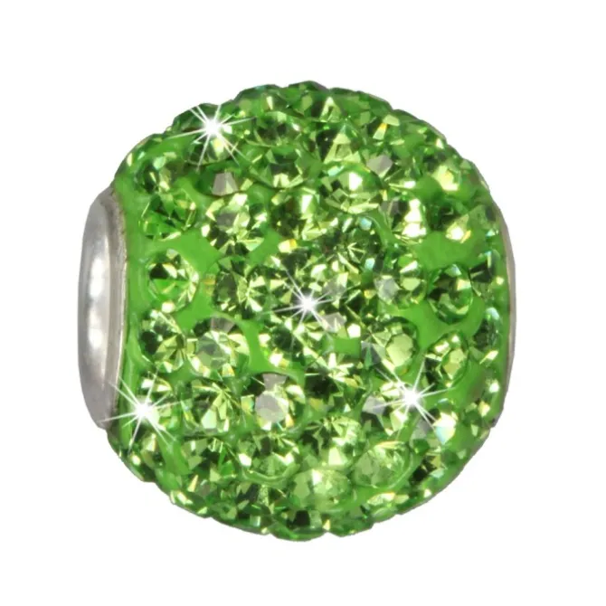 Ein Bead mit Zirkonias Kristallen – mit Zirkonias Kristallen hellgrün Shiny – mit 925 Silber Kern für Bettelarmband oder Halskette. Das Bead ist im European-Beads Stil gefertigt. Die Zirkonias erstrahlen auf dem Bead im klarem Kristallglanz.