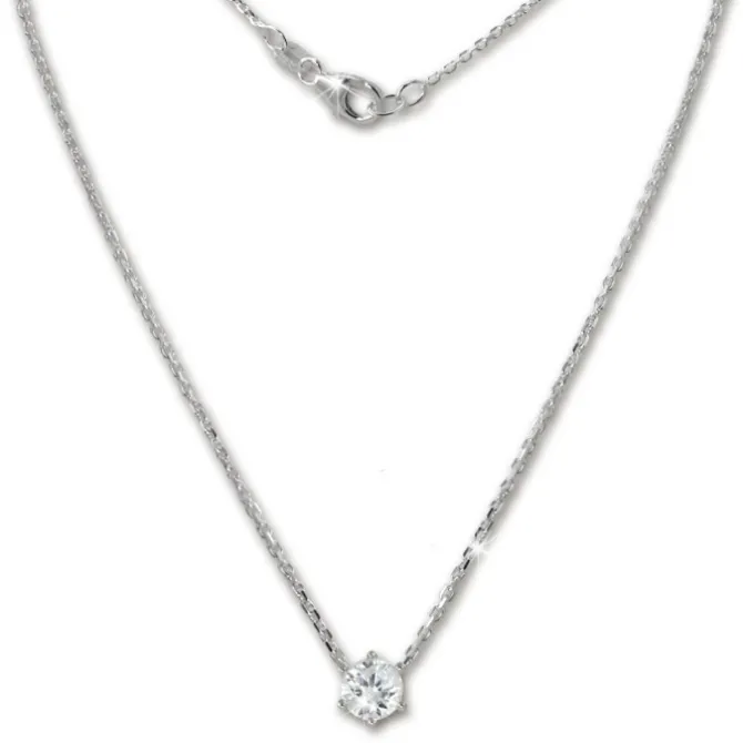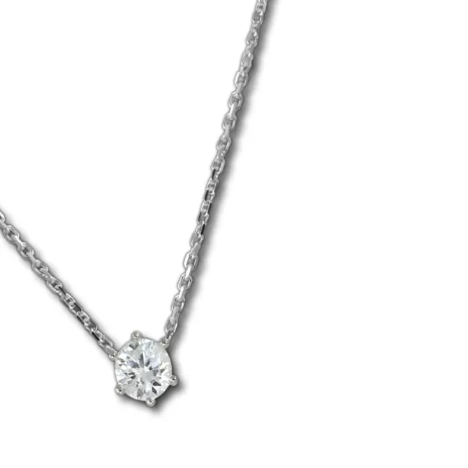 Eine zarte Halskette Zirkonia Stein weiß in der Gesamt-Länge von 46cm mit einem Federringverschluss. Die Kette ist aus der einzigartigen SilberDream Schmuck Kollektion und aus allergenfreiem, anlaufgeschütztem und poliertem 925 Sterling Silber. Diese Halskette ist sehr fein und edel verarbeitet. Der Anhänger besteht aus einem funkelnden, weißen Zirkonia. Der Zirkonia Kristall ist fest an der Kette verbunden.