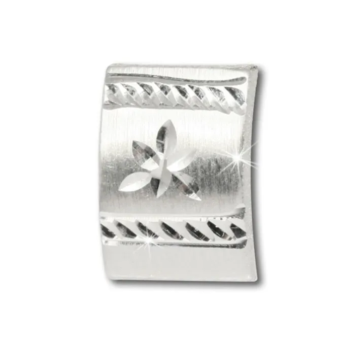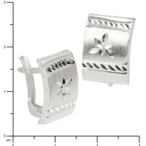 Schicke Ohrringe mit diamantierten Muster in Form einer Blume auf matter Oberfläche, sehr leichte Ohrringe aus unserer einzigartigen SilberDream Schmuck Kollektion aus anlaufgeschütztem 925 Sterling Silber.