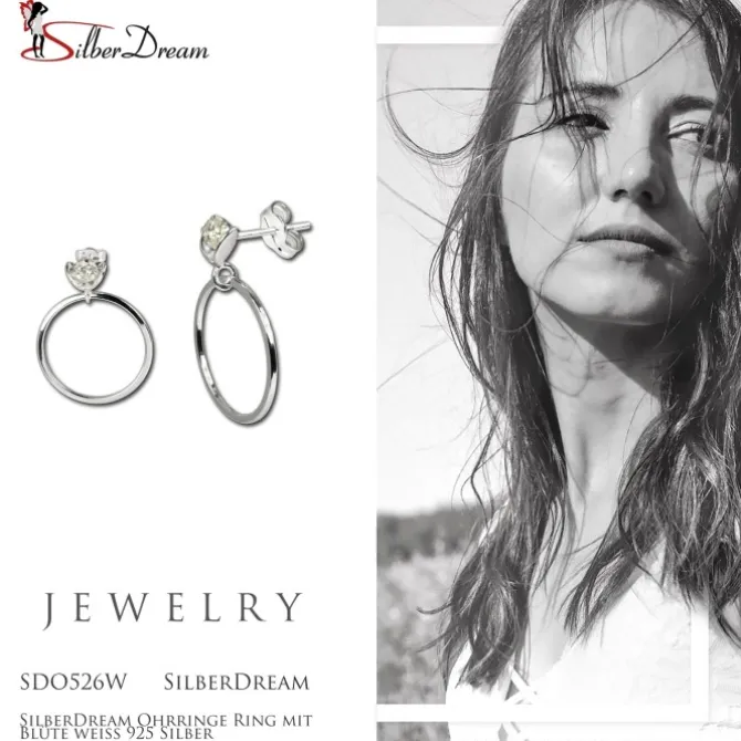 - Kurzbeschreibung: SilberDream Ohrstecker Ring mit Blüte weiß 925 Sterling Silber