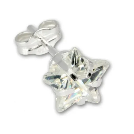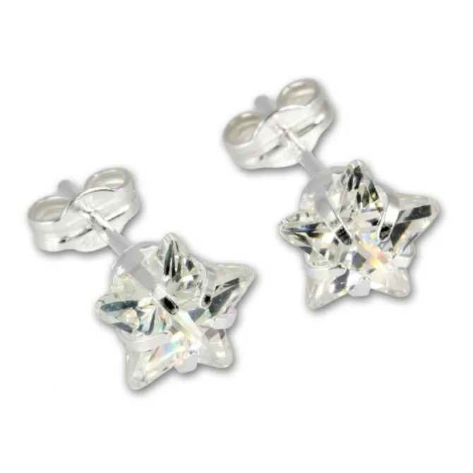 Ein Paar Ohrstecker Sterne weiß aus geschliffenen Zirkonia – Ohrringe aus unserer einzigartigen SilberDream Kollektion aus anlaufgeschütztem 925 Sterling Silber.