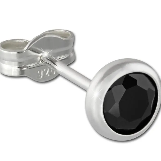 Ein Paar Ohrstecker Zirkonia schwarz, 5mm Ohrringe aus unserer einzigartigen SilberDream Kollektion aus anlaufgeschütztem 925 Sterling Silber.