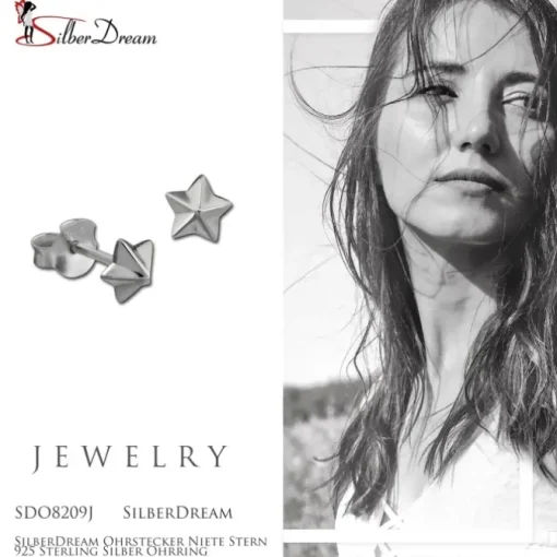 Ein Paar Ohrstecker Niete Stern – kleine Silber Ohrringe aus unserer einzigartigen SilberDream Kollektion aus anlaufgeschütztem 925 Sterling Silber. Der kleine Ohrstecker ist auch geeignet für Zweit- und Drittloch.
