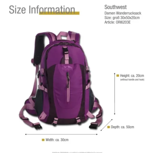 Dieser praktische Rucksack von Southwest aus der Hiking-Kollektion ist ein optimaler Begleiter für Ihre Outdoor Aktivitäten. Der Rucksack zeichnet sich durch sein strapazierfähiges Material aus.